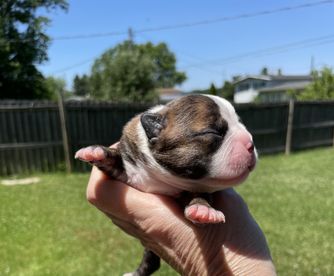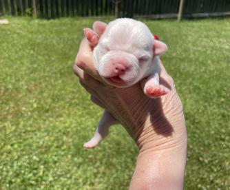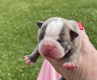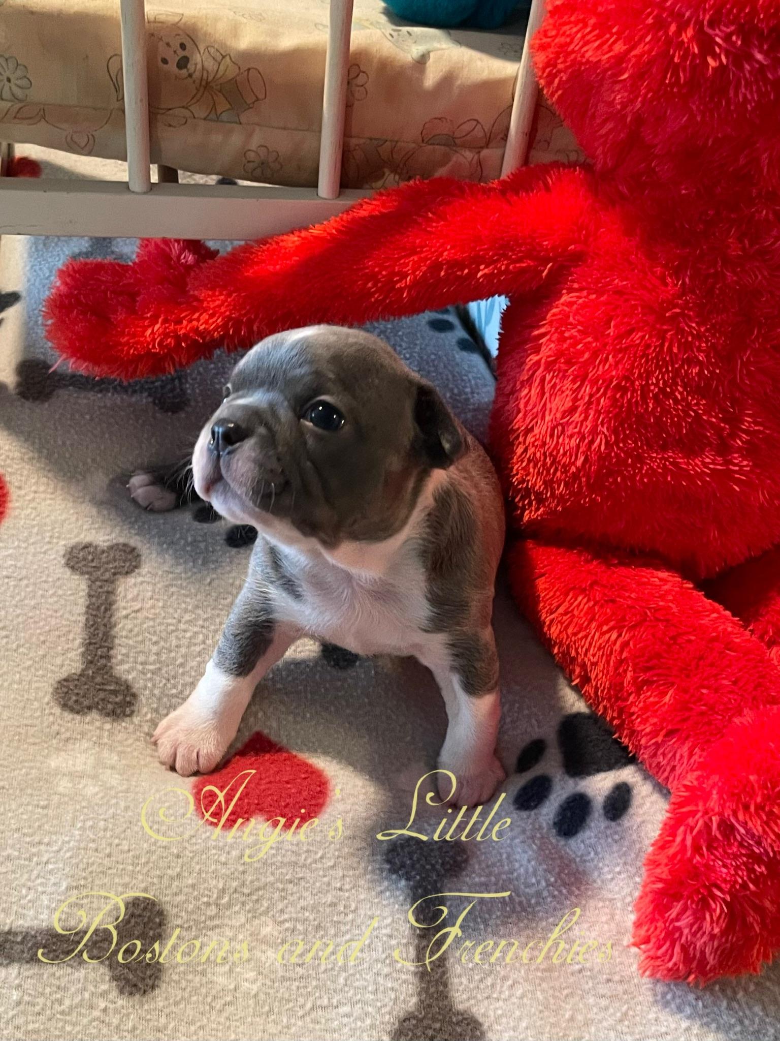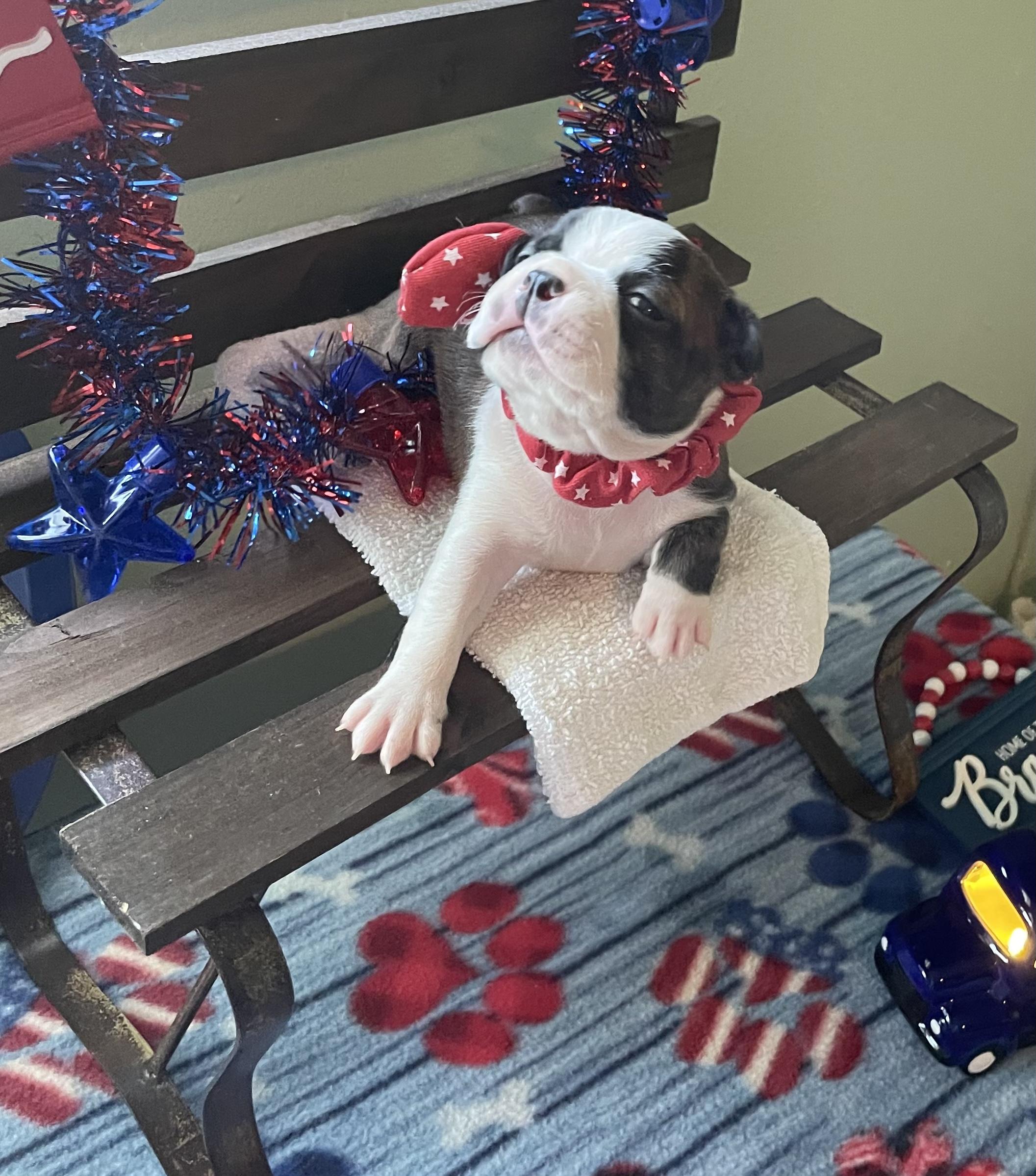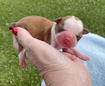 I got Amos a few weeks ago and Angela is the fifth Boston terrier breeder. I’ve worked with in my lifetime. Hands-down, she is the best. She is so involved in handling the puppies in her home and loving each one of them with the rest of her family. She sent Daly videos and pictures and updates of his progress each day. She answered any questions that I had and was willing to meet with me and go over any concerns I had before I decided to move forward with adapting my new puppy she even gives you a goodie bag to go home with your puppy that has items from the pen like blankets and toys so that the scent of his old home is with him there and his new home to comfort him on that first night. She is a wonderful human being and a wonderful dog lover. I highly recommend her. She will also be the breeder that my family will go to in the future if she is still pursuing this part of her life.