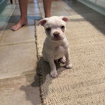 I had the best experience with Angie's Little Boston's when getting our new best 4-legged friend! So lucky to have found her. She kept me up to date and sent photos / videos during the weeks we were waiting to pick up the pup. (That time period seemed like the longest in the world, but she was great to keep us updated!) When we picked him up, she provided us all the information we needed from shot records, to food, to blankets and toys with his family scent so he would settle in good. She had worked on potty training them a bit inside and he is good about using wee wee pads. He sleeps the entire night through! how lucky are we! Anywho... long story short - she's not part of our family forever. Thank you so much!
