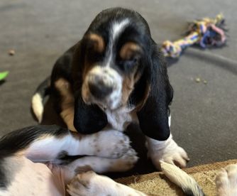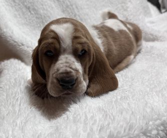 I'm Ashley W., the breeder behind Angus Acres Basset Hounds located in Genoa, NE. We raise our puppies with total care and attention so they can become well-socialized and loving additions to their forever homes. Our program is focused on producing puppies that are healthy, well-structured, and have outstanding temperaments. We strive to place each one in a loving home!