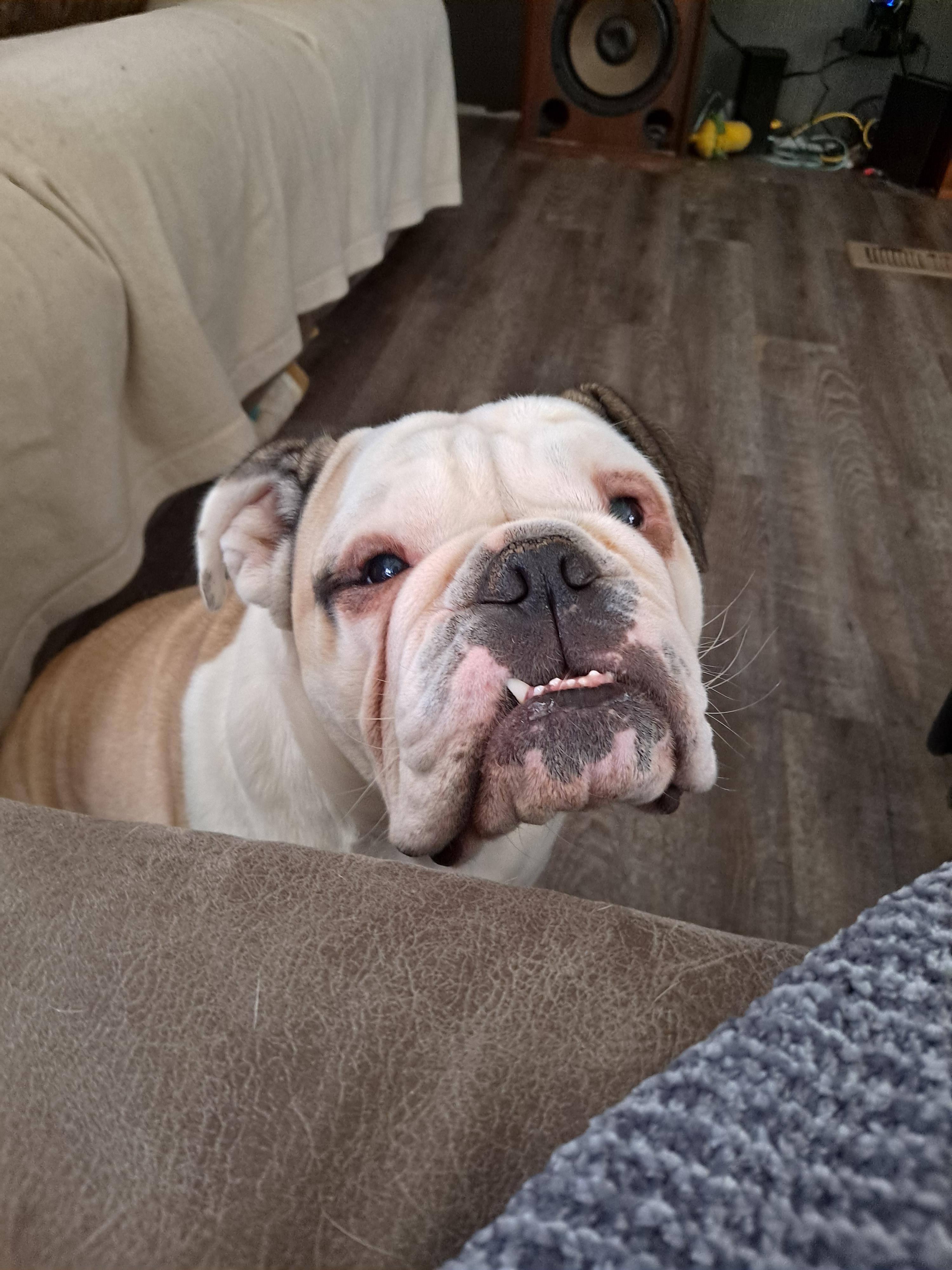 Hearly is a female Bulldog. Carefully selected as a great representative of her breed, Anika decided to make her part of their program. Anika has passed Good Dog’s screening process, which involved a review of their breeding practices, environment, and the mental and physical health of their dogs.