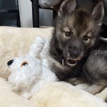 Working with Cherish was amazing, she always kept me updated on everything going on with all of the puppies, responded fast, and she left no questions unanswered even while working with a 10 puppy litter. Everyone in the house adores Charmy. Thank you Anime Huskies!