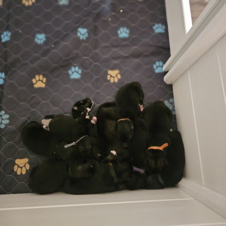 We spend time with each individual puppy. Each puppy is unique so we work with them on what works best for that specific puppy.