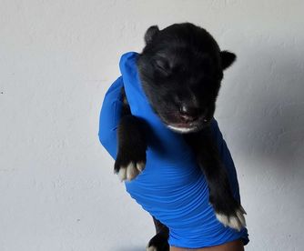 Our puppies include agouti and white, gray and white, black and white, red and white, and black. Colors will vary depending on the parent dogs.