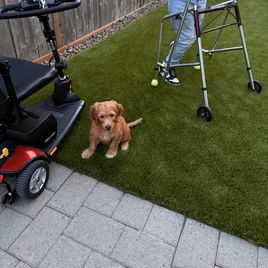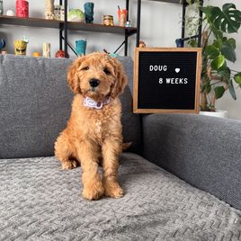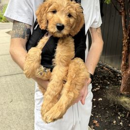 As someone with cerebral palsy, I really appreciate how gentle and patient our golden doodle, Canelo, has been from day one. He has such a sweet temperament and it’s clear he was raised with a lot of care and love. He’s also been super healthy, which gives us a lot of peace of mind.