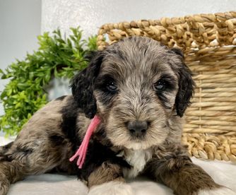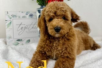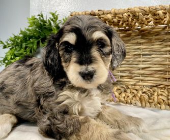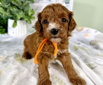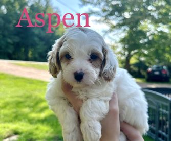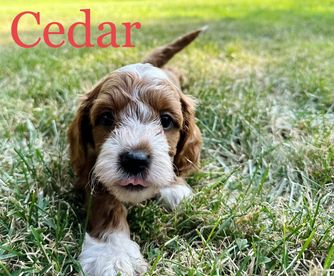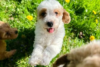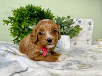 Our Goldendoodle puppies include apricot and merle. Cavapoo puppies include red, cream, and apricot. Colors will vary depending on the parent dogs.