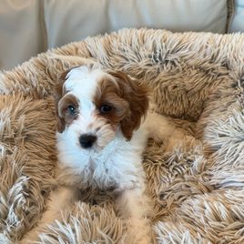 Brinley is a female Cavapoo. Carefully selected as a great representative of her breed, Anna decided to make her part of their program. Anna has passed Good Dog’s screening process, which involved a review of their breeding practices, environment, and the mental and physical health of their dogs.