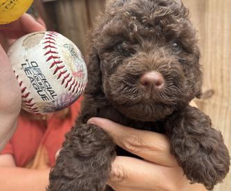Ladybug is generations of our breeding in the most perfect package. She creates very consistent puppies with correct type, beauty and brains! We love training her puppies because she encourages them to be full of confidence and love people as much as she does. Ladybug has never met a stranger and works in many areas. She is a favorite for anxiety intervention and it’s not a sports event if she isn’t there to cheer on the teams! We are partners in her great grandfather, one of the most celebrated Italian Champions in the USA, and love all the generations that she represents. Ladybug’s mom is also a special ambassador who is retired after creating the next level of Lagottos for the USA in her two beautiful litters. One of which Ladybug is from. Ladybug and Leo’s puppy was featured at the 2023 Medical Symposium at CIRTS for naturally occurring into service for Diabetic Alert. We repeated this breeding because of the amazing service dogs created by them! We are breeding her to the most famous Italian Champion Casper! Puppies arrived the 13th