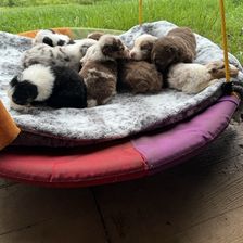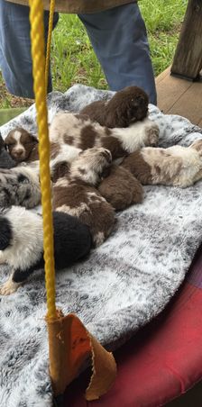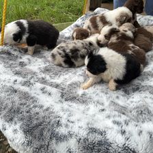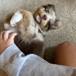 Martha was absolutely amazing during this whole process. She was very quick to respond, very open to having us come visit the pups several times, and even gave us access to watch the pups live camera. These puppies are so incredibly well taken care of I’ve never seen anything like it. we also got a bag upon pickup with all of the pups information organized in a personalized folder, a framed birth certificate, toy, blanket, food, and treats! This breeder and family is so attentive and knowledgeable about the Aussie breed, you couldn’t ask for better truly!