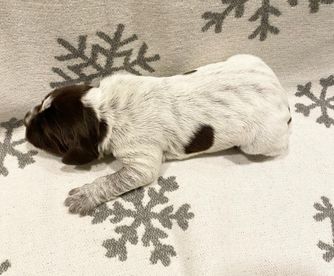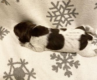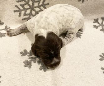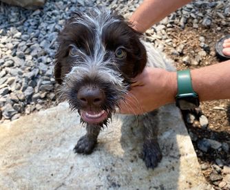 Cricket is a female Wirehaired Pointing Griffon. Carefully selected as a great representative of her breed, Jackie decided to make her part of their program. Jackie has passed Good Dog’s screening process, which involved a review of their breeding practices, environment, and the mental and physical health of their dogs.