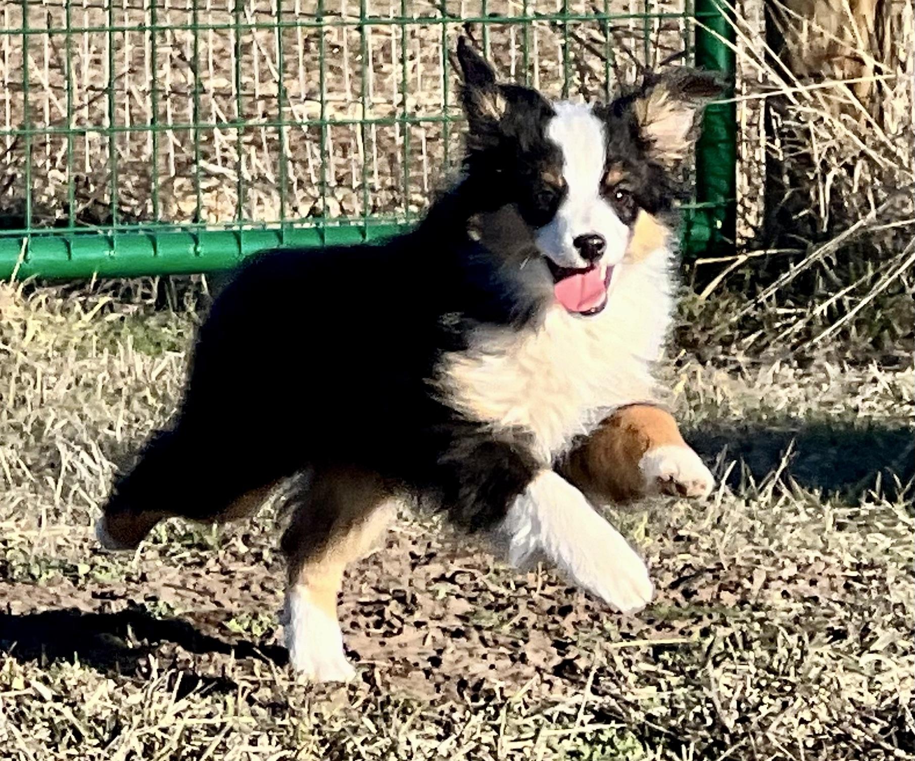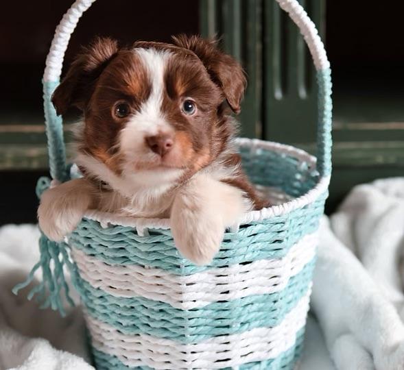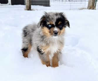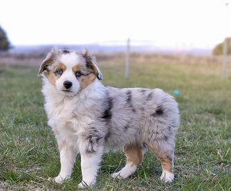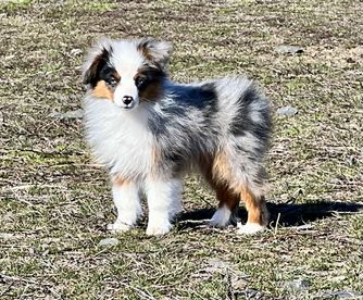 Our Miniature Australian Shepherd puppies include blue merle, black tri, red tri, and red merle. Toy Australian Shepherd puppies include black tri, blue merle, red merle, and red tri. Colors will vary depending on the parent dogs.
