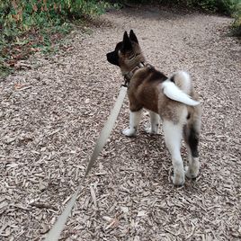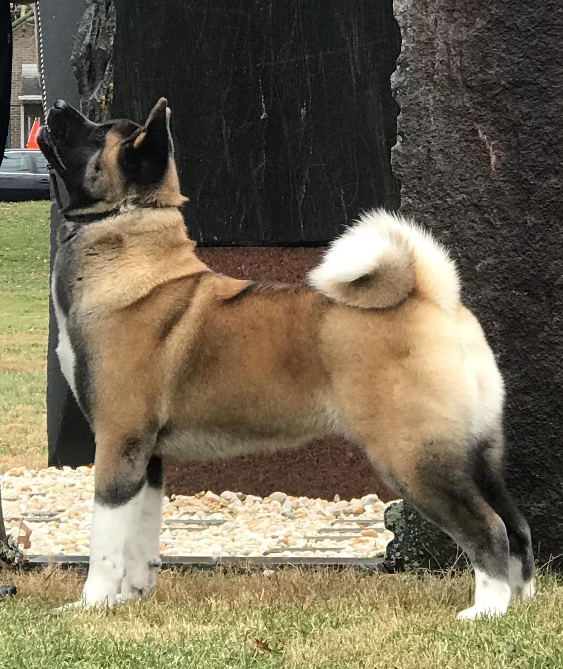 Stone is an extremely attractive Akita. Robustly built!Her color is very rear creating a presence of the wild when she comes around. Her temperament is balanced and sound.