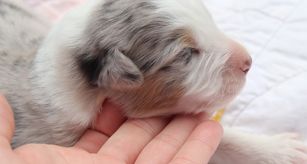 Our puppies include black, red merle, blue merle, and red. Colors will vary depending on the parent dogs.