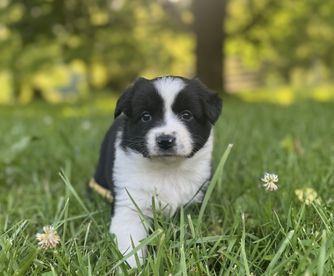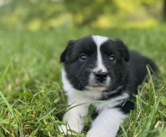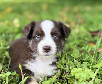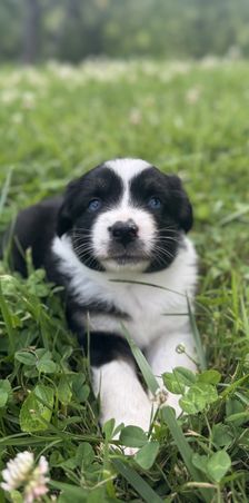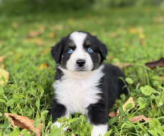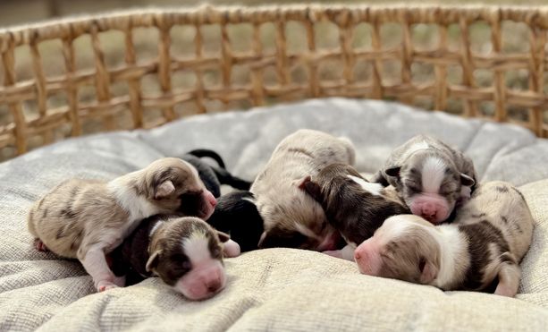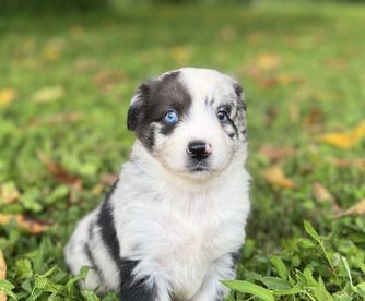 Our puppies include black & white, red & white, blue merle, black tri, red tri, and red merle. Colors will vary depending on the parent dogs.