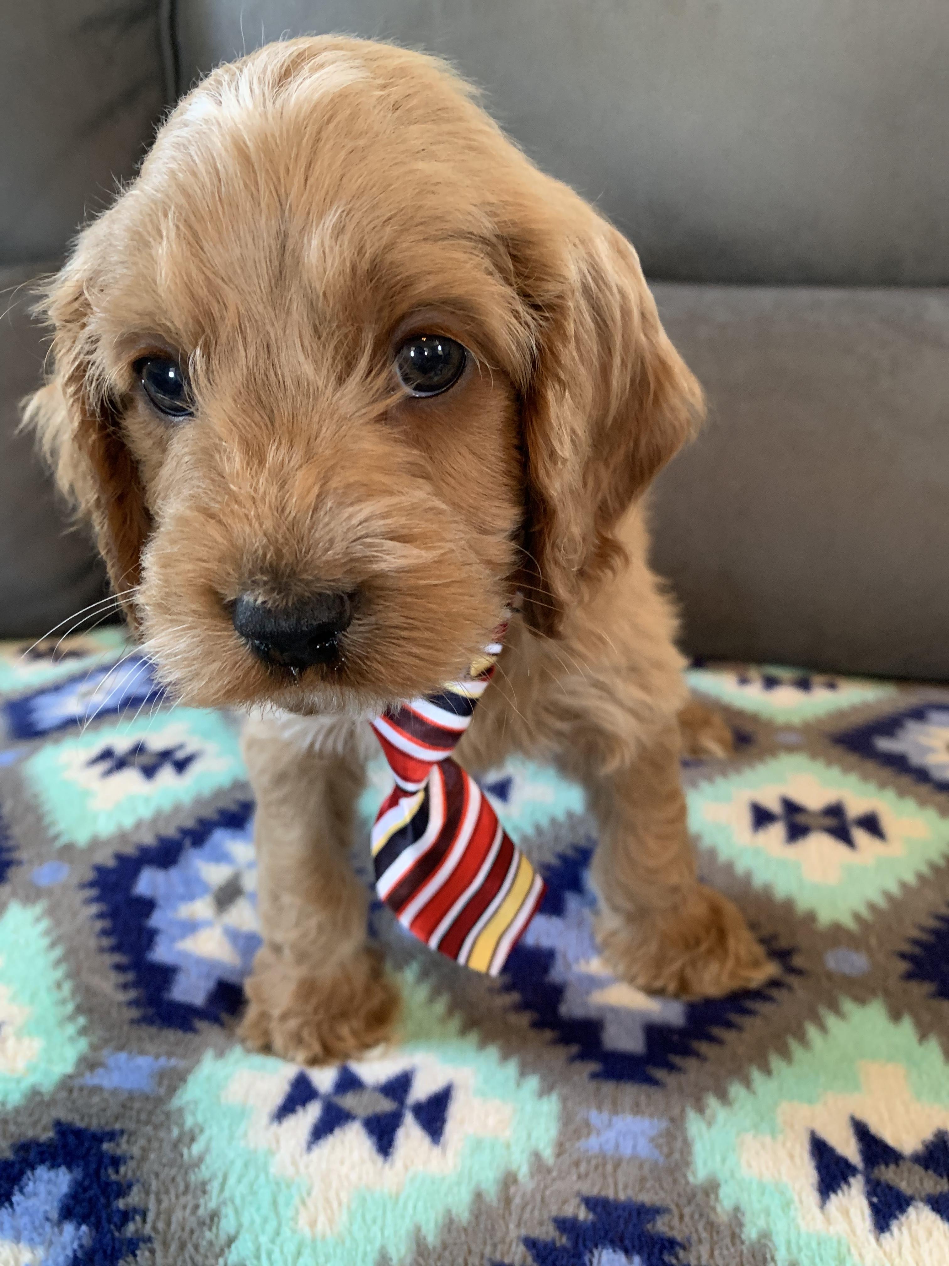 Cockapoo puppies are mini size. Sizes will vary depending on the parent dogs.