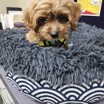 Finley is doing really well. He has a lot of energy and loves to cuddle. Belly rubs are his favorite and somehow he knows the sit command! His bestie is our daughters 10 week old Yorkie puppy Bailey.