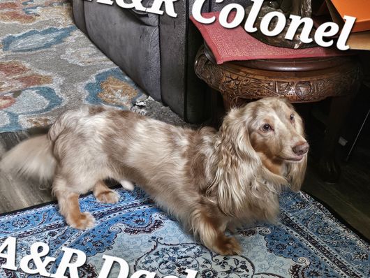COLONEL is a male Dachshund. Carefully selected as a great representative of his breed, Alexis decided to make him part of their program. Alexis has passed Good Dog’s screening process, which involved a review of their breeding practices, environment, and the mental and physical health of their dogs.
