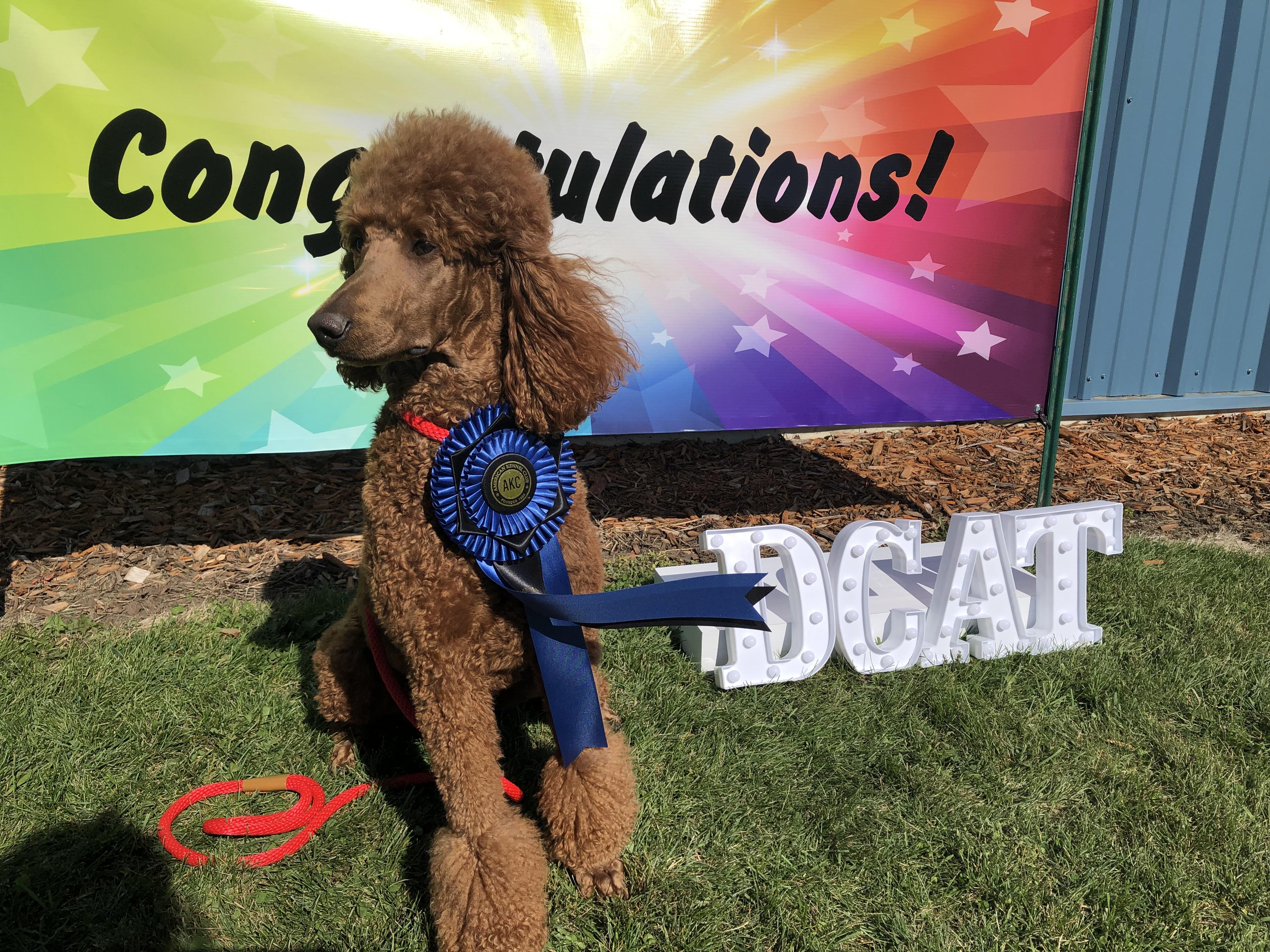 We do sensory stimulation on all our puppies from the 3rd day to the 21st day. We introduce all types of activities, noises and textures for puppies, this guarantees our standards adapt very well and fit into a family routine rather quickly. Our standard puppies are also introduced to many different smells during their first weeks of life. Our dogs are kept busy working on AKC Titles in CGC, Rally, Trick, FASTCAT and Dog Therapy. Our program shares photo's and video's of puppies in our home from birth to 8 weeks of age via our Facebook account, link below.
