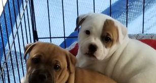 Our puppies are red and white. Colors will vary depending on the parent dogs.