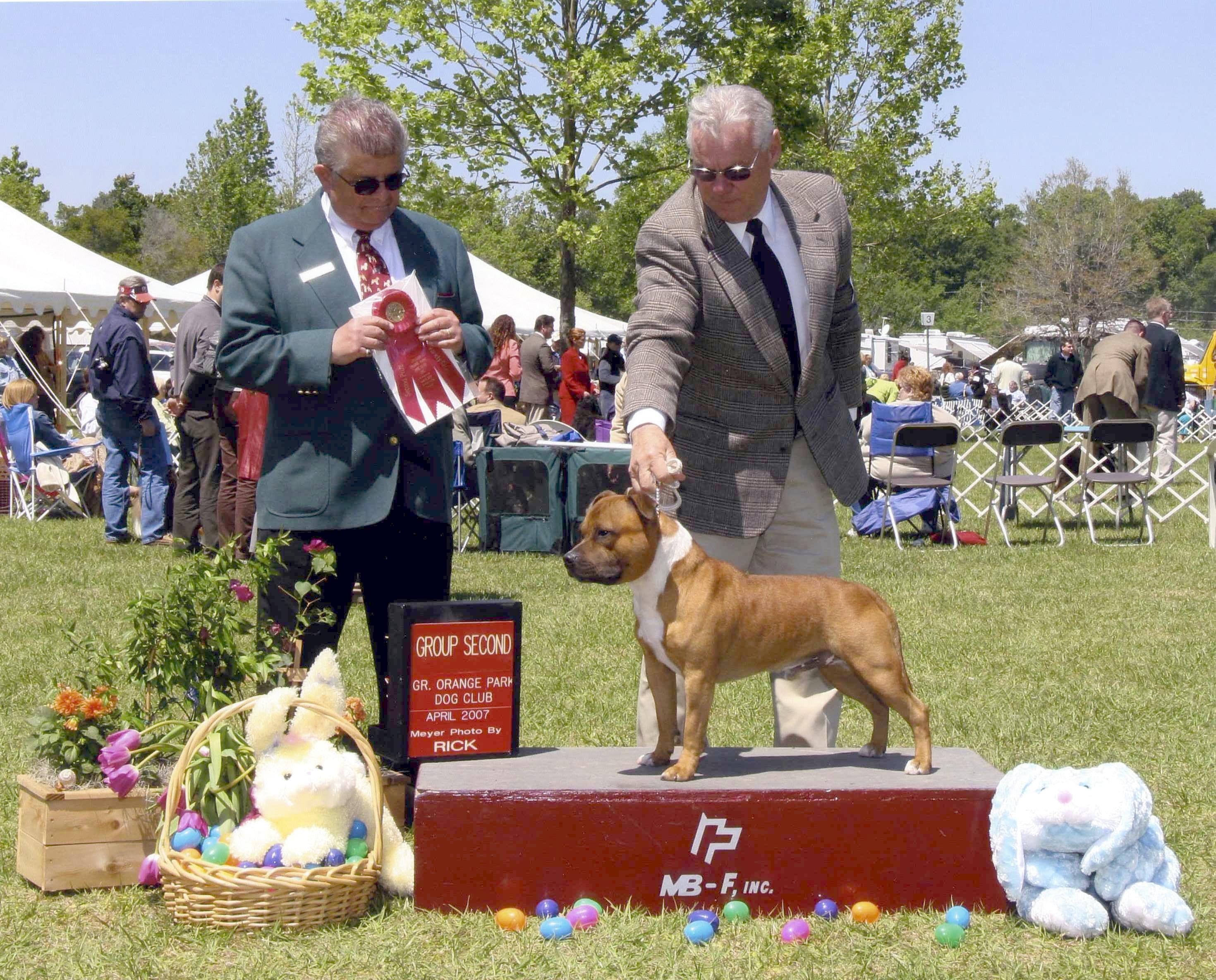 Aran Isle Staffords reports to performing the health tests below on their breeding dogs. Ask your breeder about the tests performed on the parents of your litter. Learn more about health testing for Staffordshire Bull Terriers.