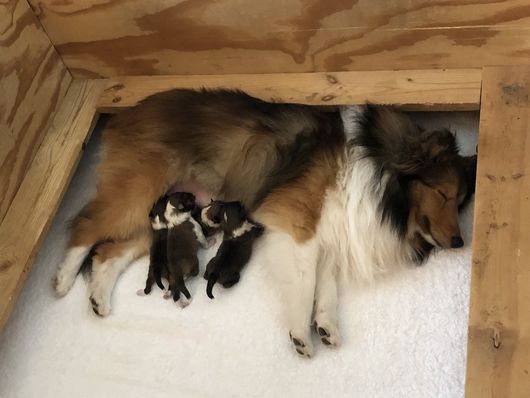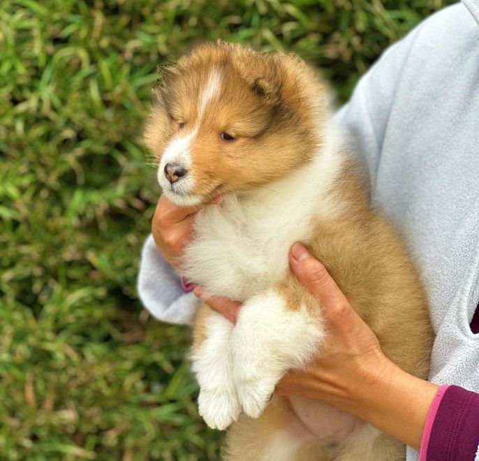 Our puppies are sable and white. Colors will vary depending on the parent dogs.