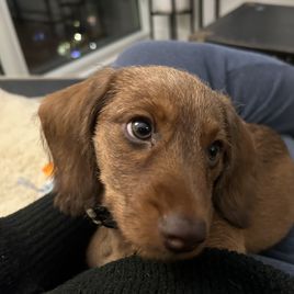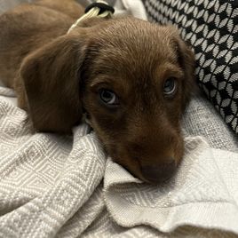 Emily was so helpful and communicative, making sure that I was matched up with the right puppy and giving lots of info based on her experience with dachshunds. She and her family were super welcoming when we came to pick up Albie!
