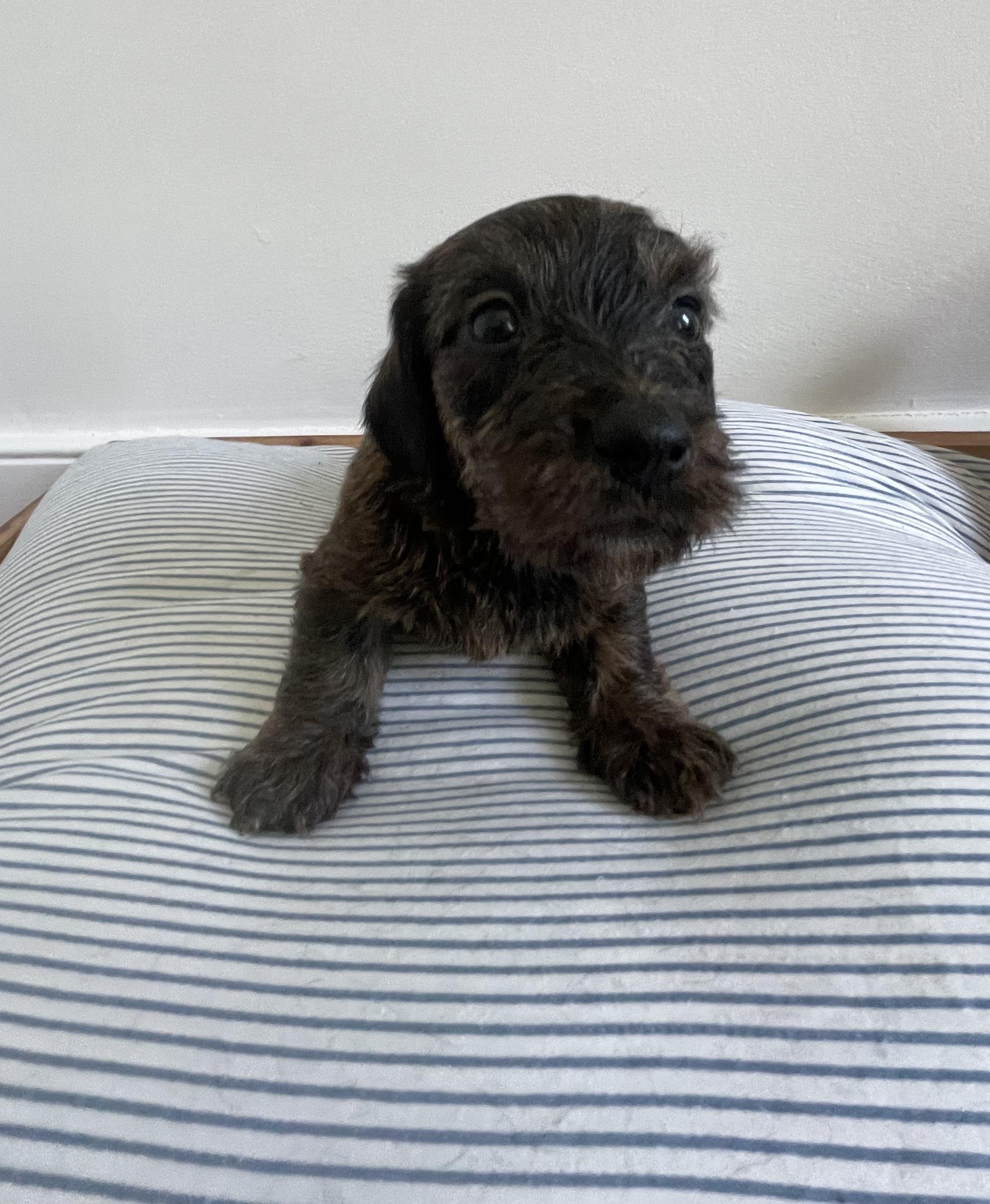 Our puppies have wirehaired coats. Coat types may vary depending on the parent dogs.