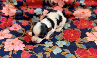 Our puppies include blue tan and white and black tan and white. Colors will vary depending on the parent dogs.