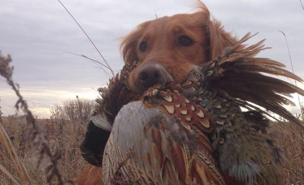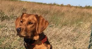 Ember is a dark red golden retriever with a wavy coat that dries quickly and is easily brushed after a day in the field or the water. She is 55 pounds and an average build. Her temperament is a typical wanting to please golden type personality. She truly enjoys training and working, although her favorite is field work! She is a great family and house dog and responds well for any of us that train her.