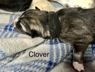 Our puppies include sable and white, gray and white, red and white, black tan and white, black and white, and agouti and white. Colors will vary depending on the parent dogs.