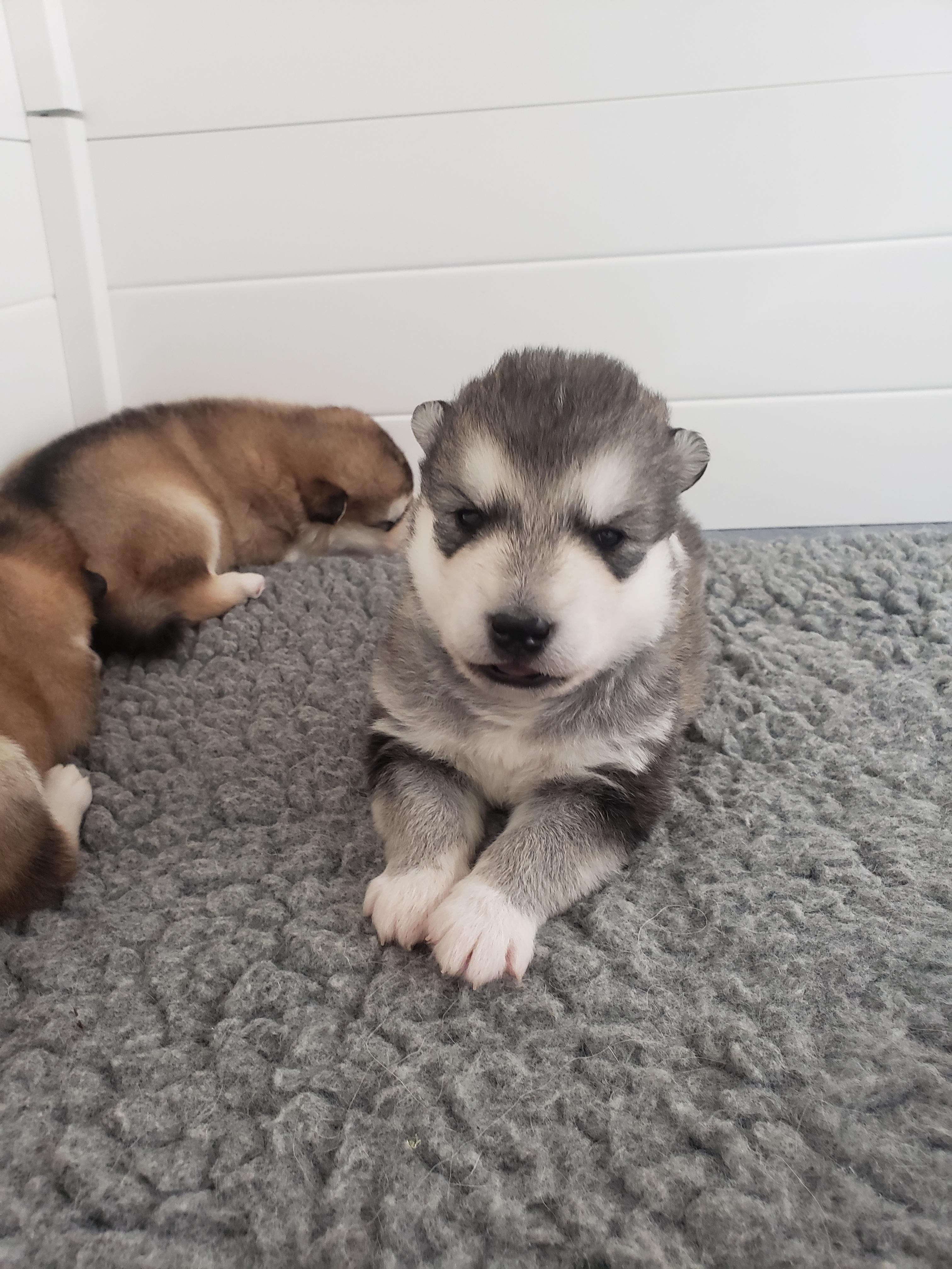 I'm Jordana O., the breeder behind ArctiCircle Alaskan Malamutes located in Kelley, IA. We are a small hobby breeder that has 1 to 2 litters a year. Our Malamutes are AKC registered, titled, and OFA health tested. Our Malamutes have conformation, obedience, and working titles. Our adults live in our home and our puppies are raised in our home. We are an AKC Breeder of Merit.