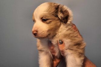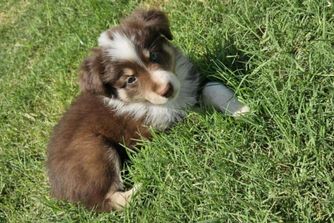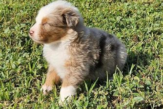 Our Australian Shepherd puppies include red merle, blue merle, black tri-color, and red tri-color. Miniature Australian Shepherd puppies include blue merle, black tri, red tri, and red merle. Colors will vary depending on the parent dogs.