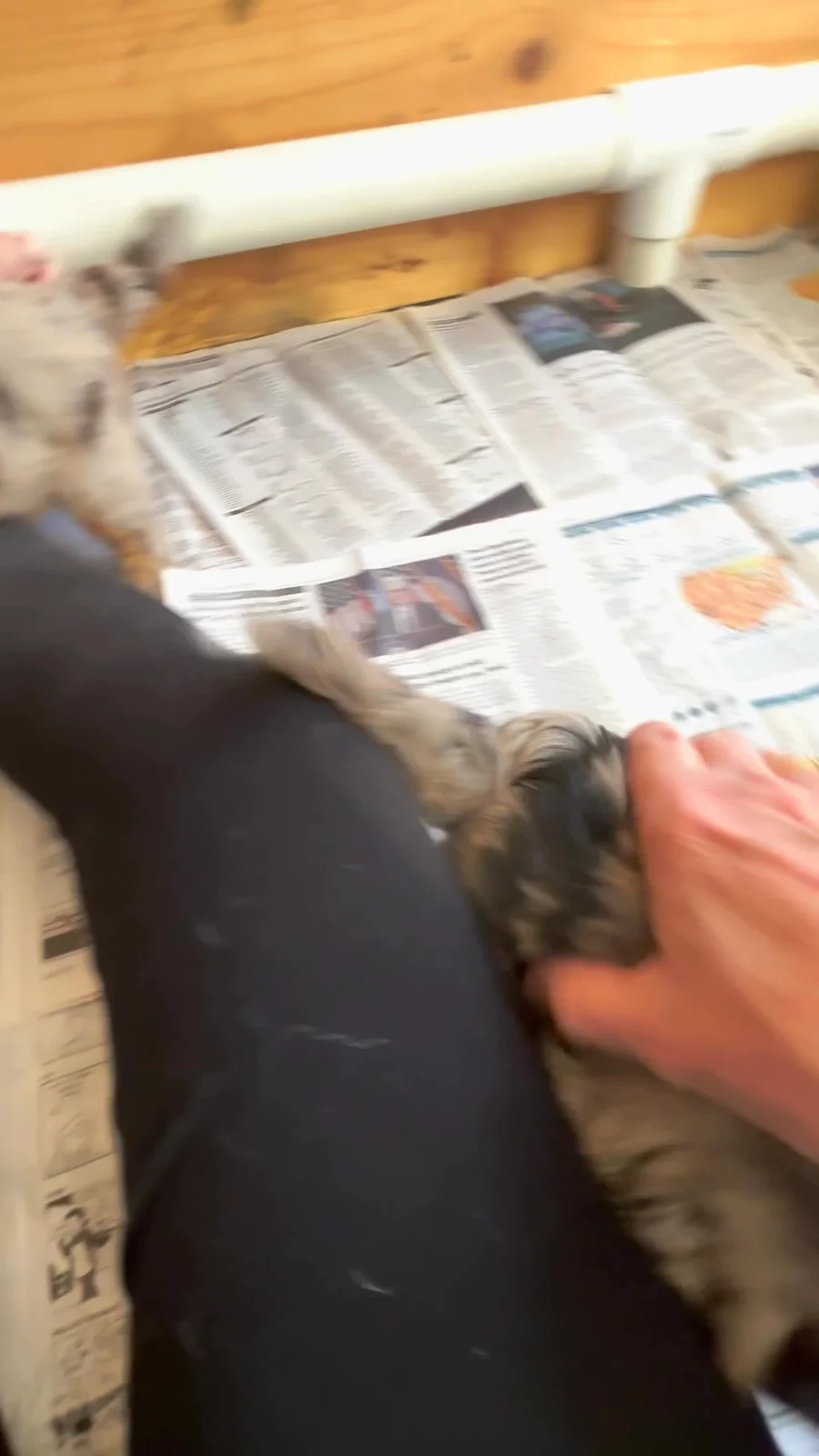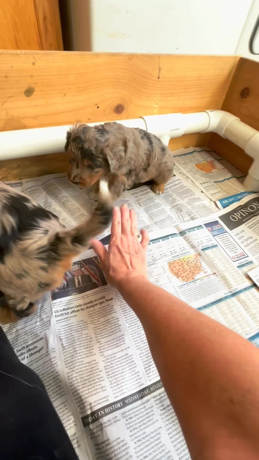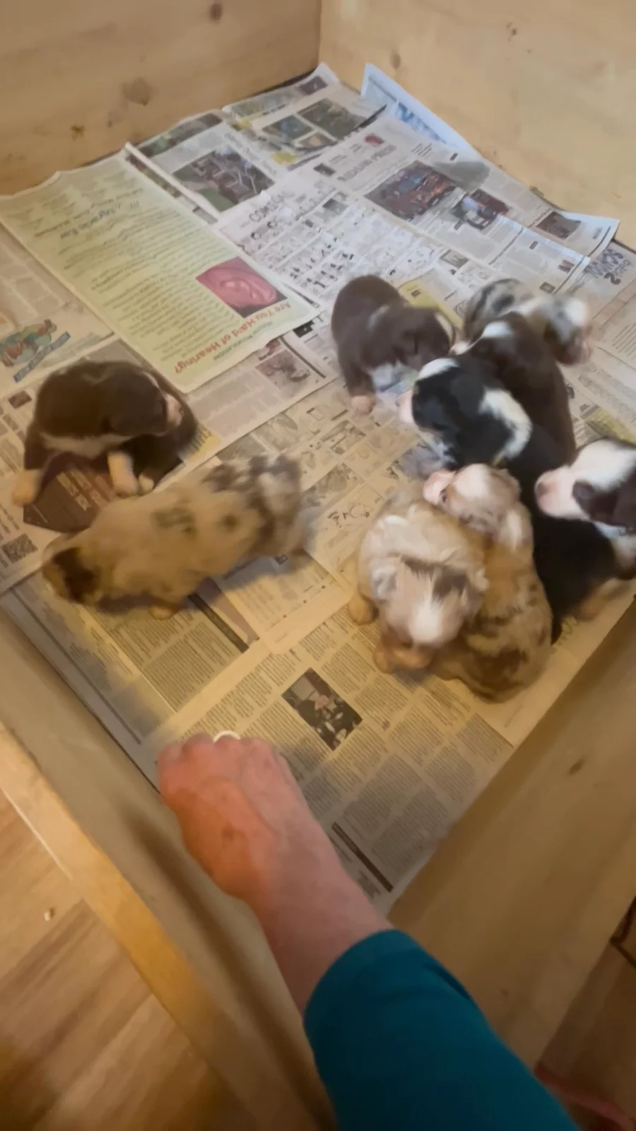 5 weeks old. The puppies are gaining confidence and starting to explore on their own.