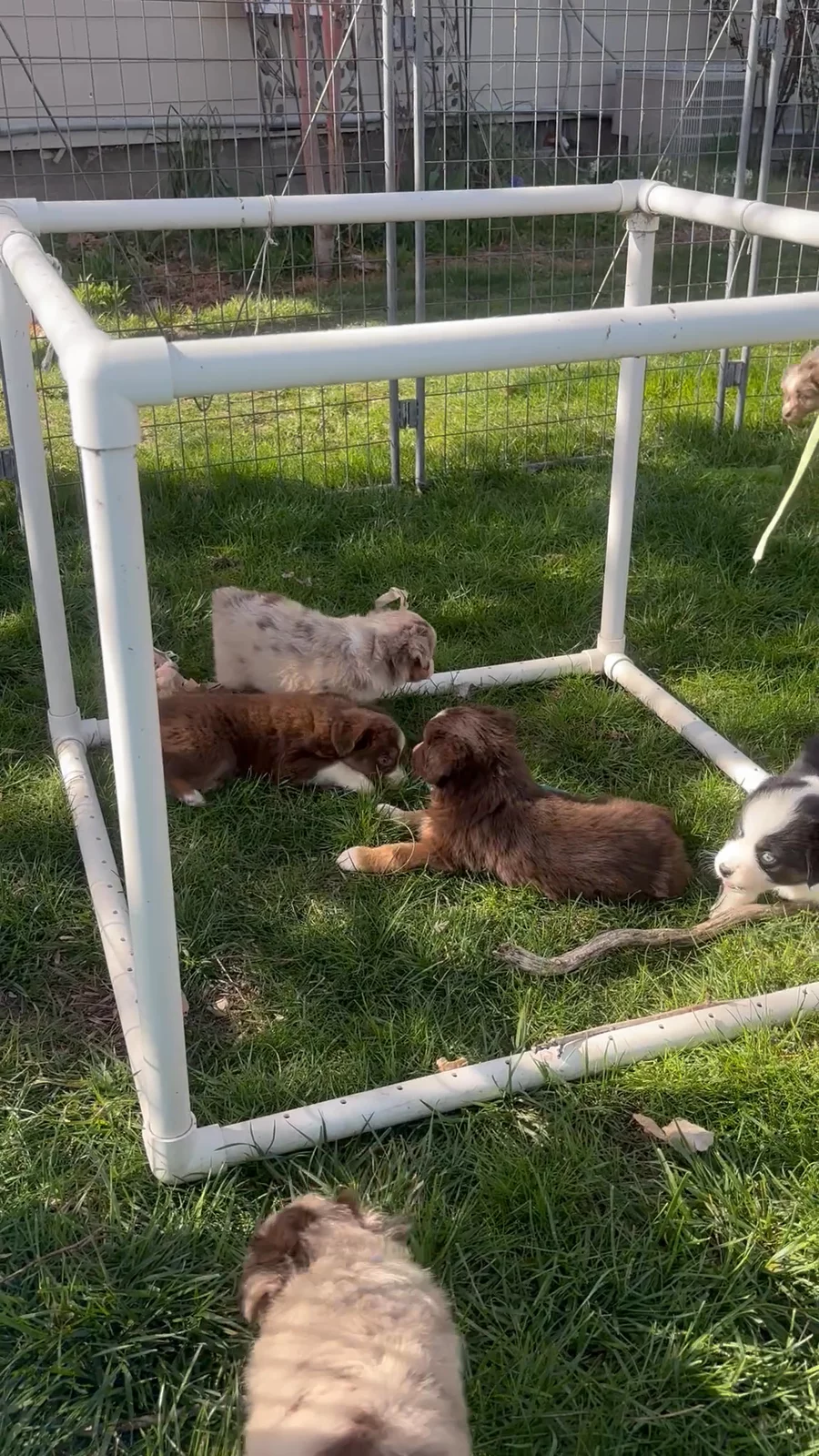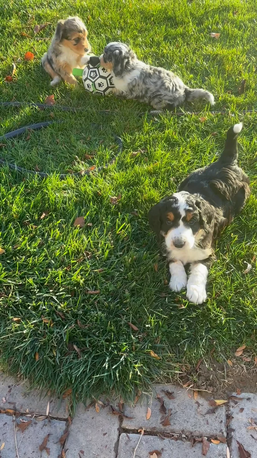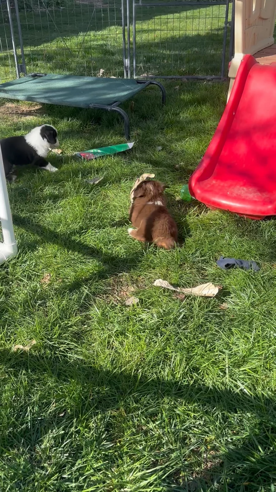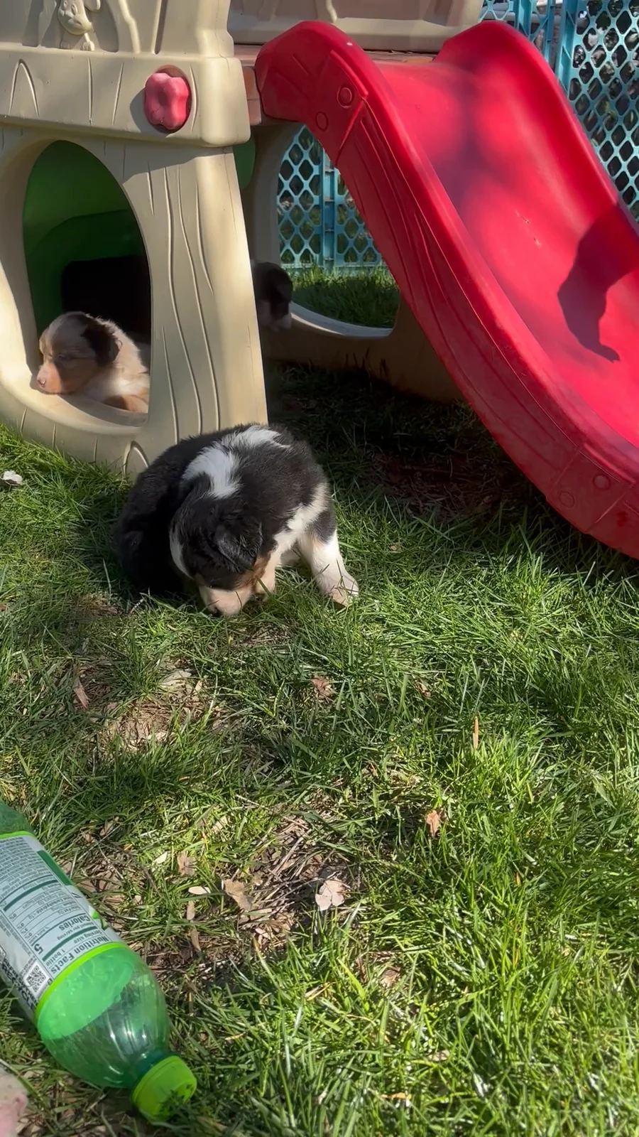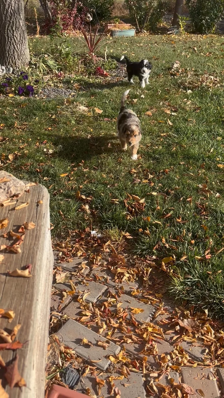 Outside playtime is the best. The puppies are building confidence through exploring and discovering their worlds.