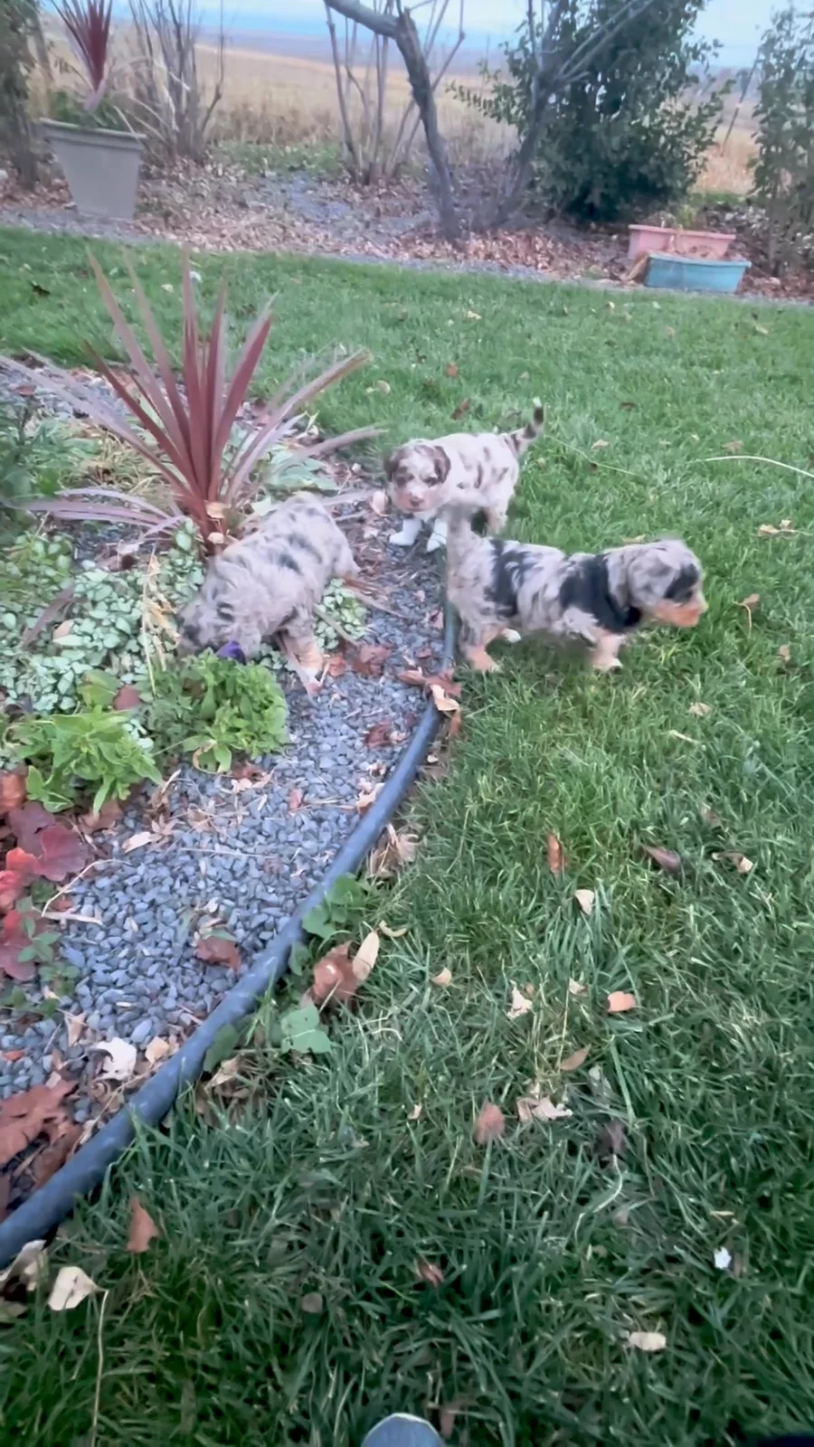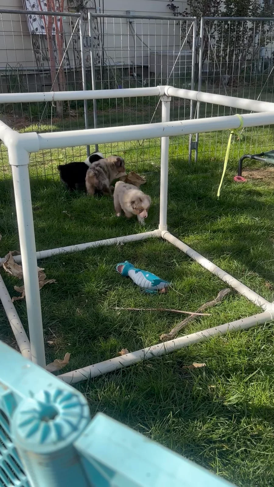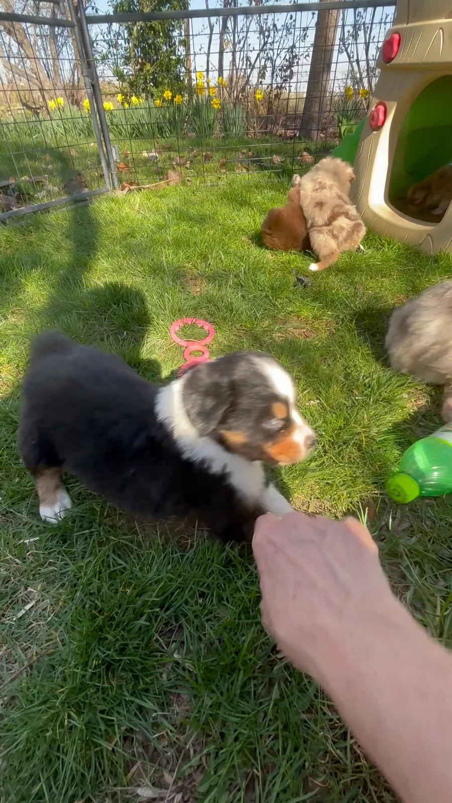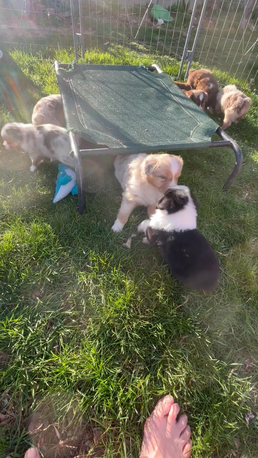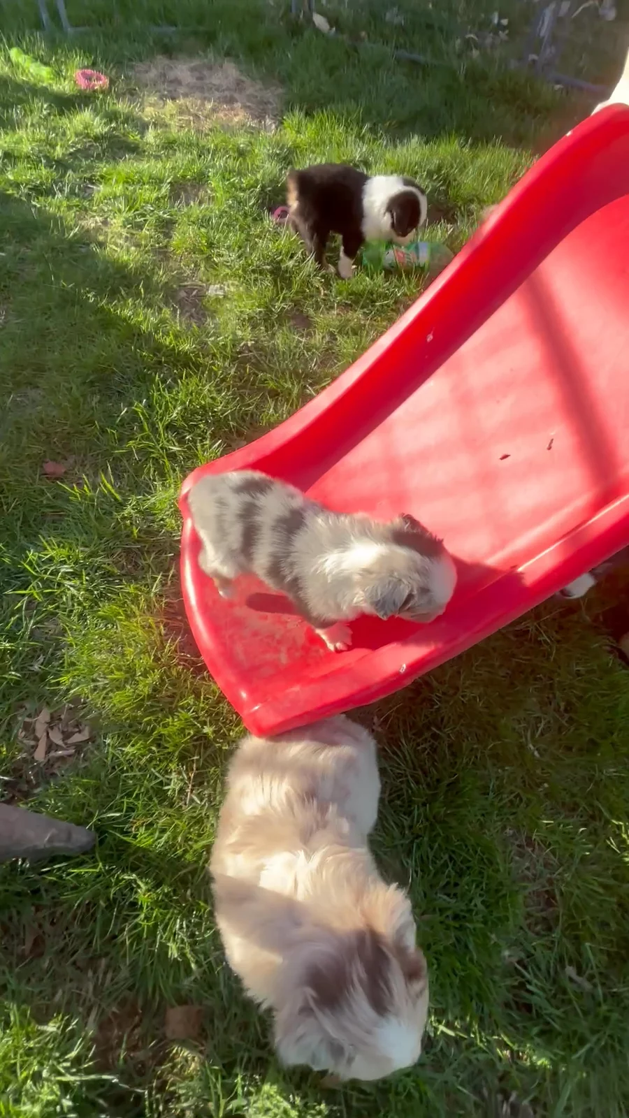 Outside playtime is the best. The puppies are building confidence through exploring and discovering their worlds.
