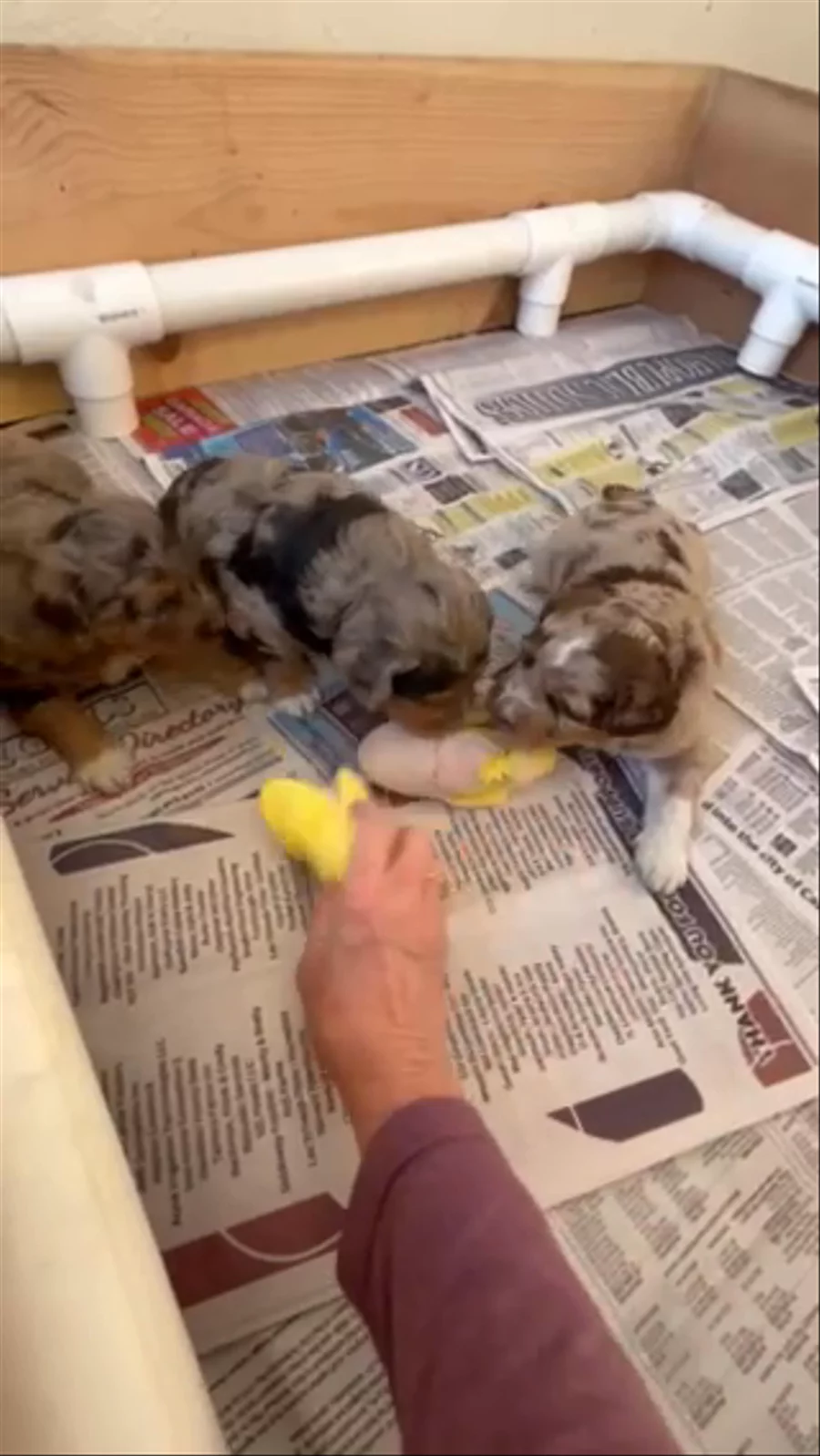 Three weeks old and the fun begins. The girls are discovering new toys and learning to play with each other. They have figured out their voices and are starting to bark, growl and respond to me when I chat with them.