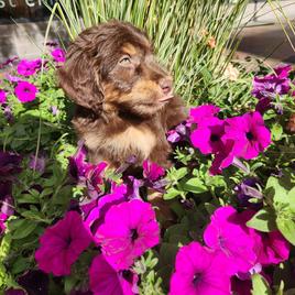 Newt is the sweetest, calmest and just lovely poodle. He has striking copper markings and is a stunning dog.