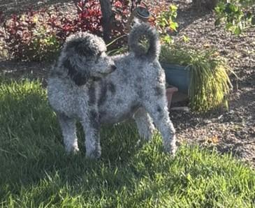 Frankie is an AKC standard poodle. She is very loyal and mild-tempered. Her main purpose in life is to be with you and get loved. She is an excellent mom and produces outstanding puppies that make the best family companions.