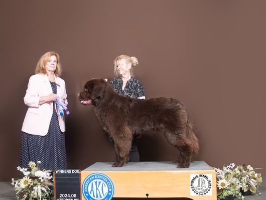 My parents bred Great Pyrenees. I still to this day keep in touch with Pyrenees people and do events with them. I always wanted a Newfoundland but waited until my own children were old enough to be apart of the puppy raising process.