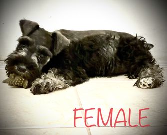 Our puppies include black and silver, salt and pepper, and black. Colors will vary depending on the parent dogs.
