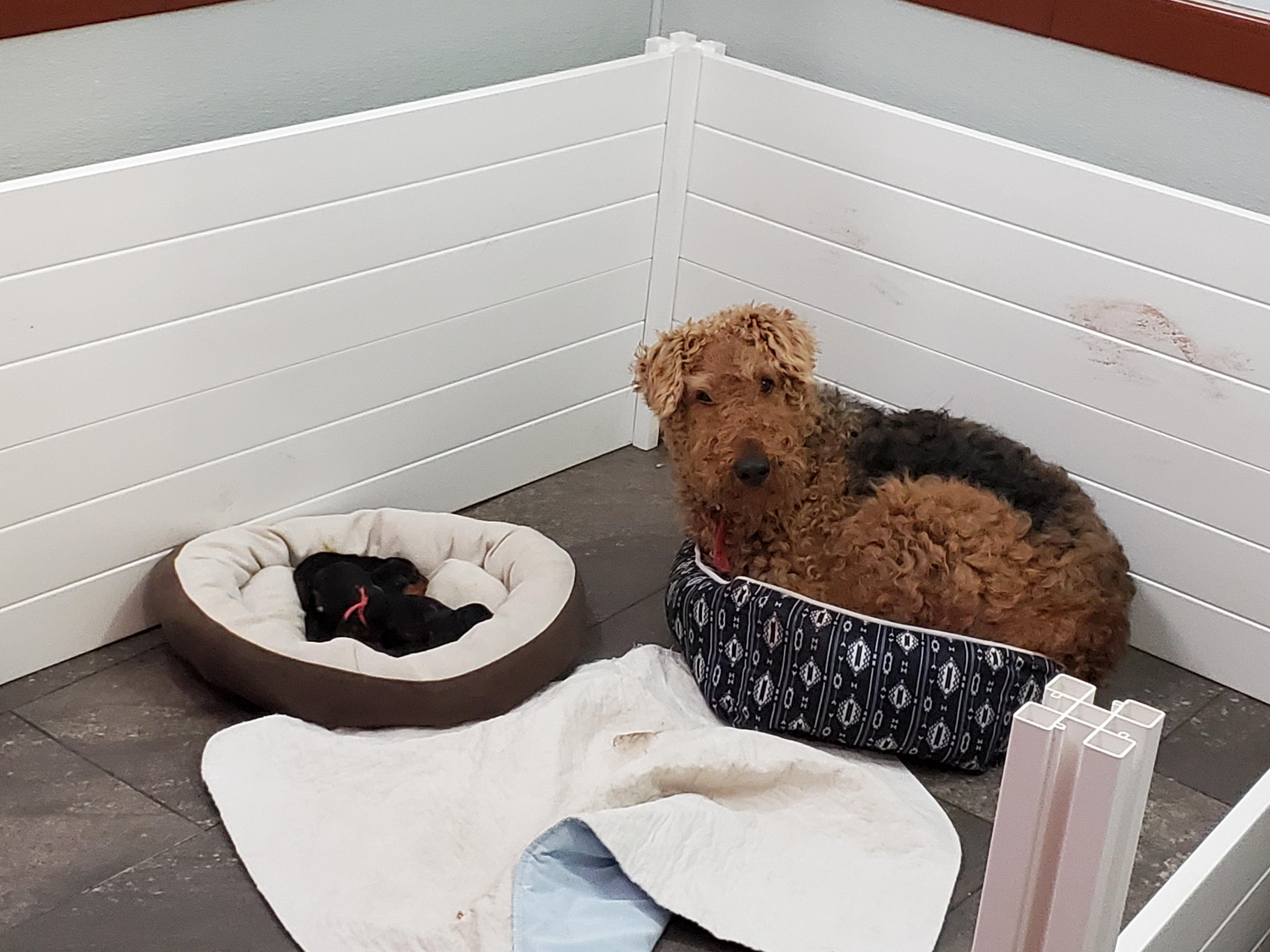 I am a professional breeder of high qualityAiredales. I do not produce a litter unless each of my parent dogs is fully healthy and excellent representations of the standard. I am dedicated to always having responsible policies when it comes to breeding, training, and rehoming my pups. I love what I do and truly want nothing more than to see each and every one of my puppies shine!