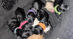 Our puppies include black, cafe au lait, and cream. Colors will vary depending on the parent dogs.