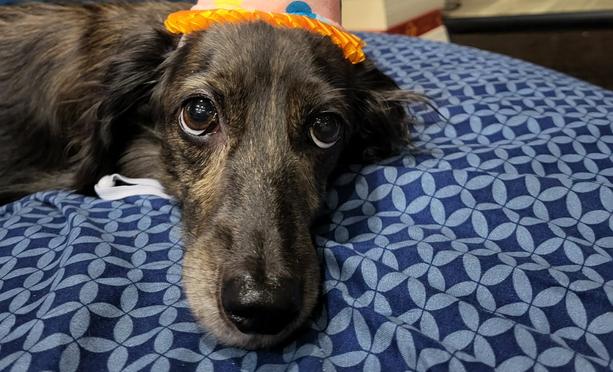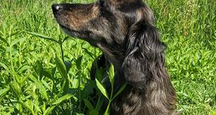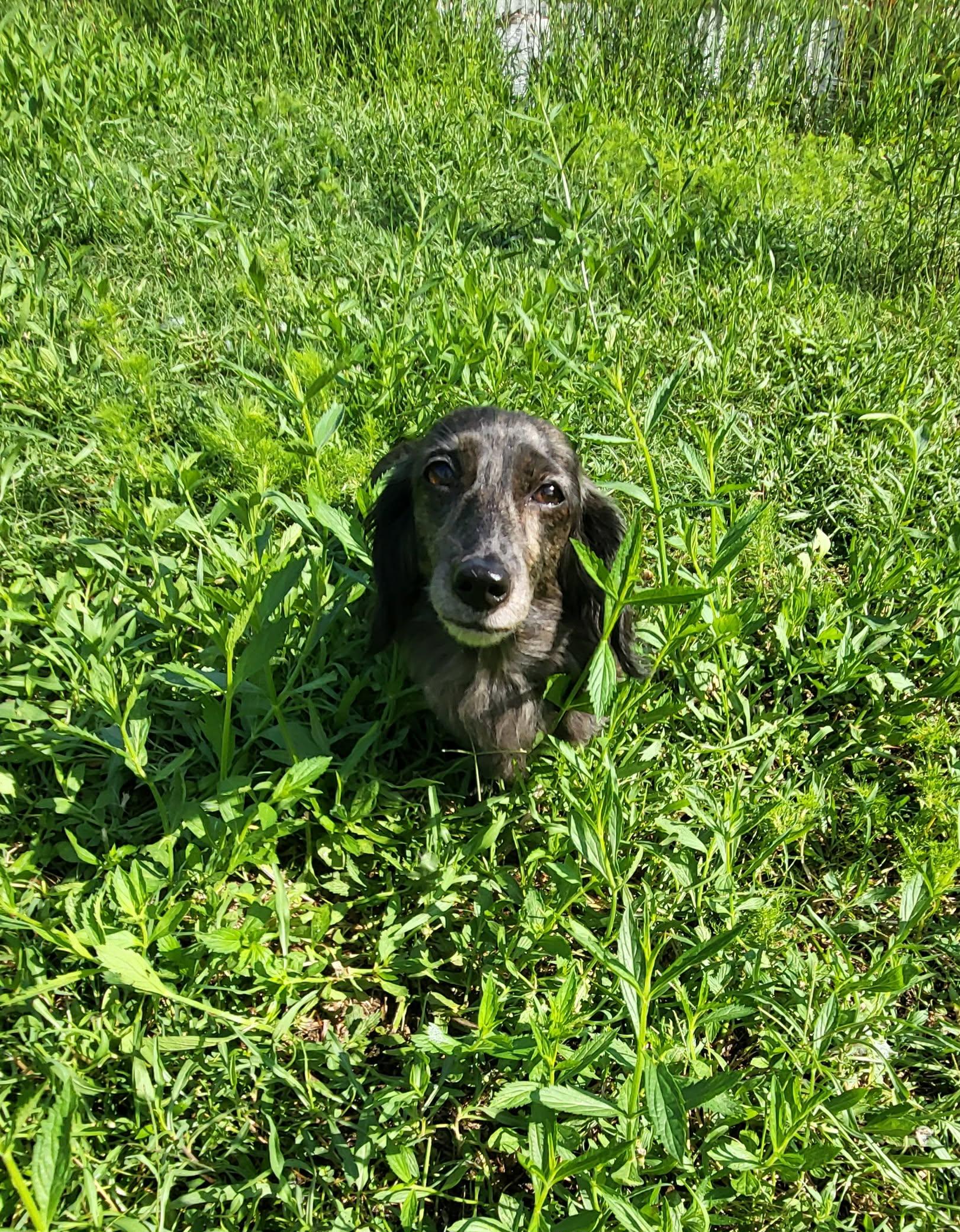 Lena is the sweetest little 7lbs long haired Brindle lady who loves snuggles and belly rubs.