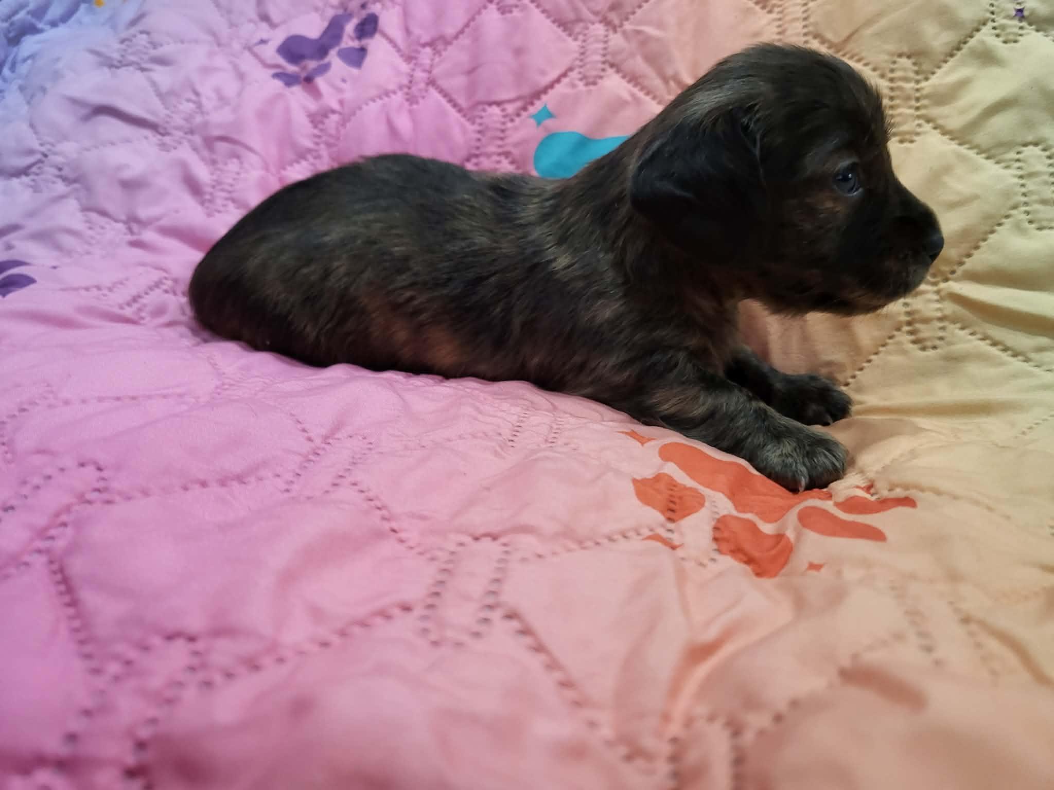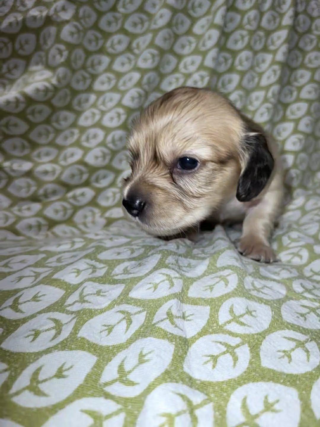 Dachshund puppies have longhaired coats. Coat types may vary depending on the parent dogs.