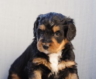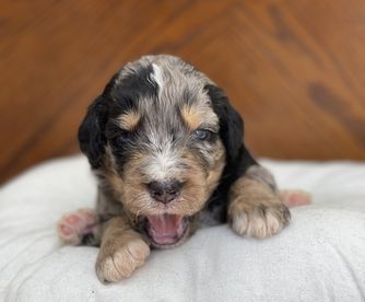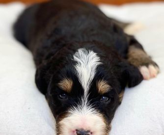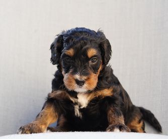 Bernedoodle puppies include tri-color, phantom, and merle. Colors will vary depending on the parent dogs.