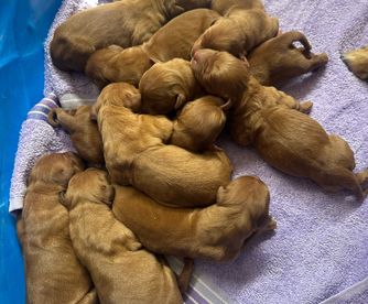 Our puppies are dark golden. Colors will vary depending on the parent dogs.