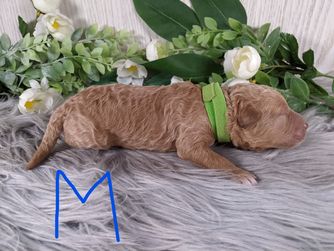 Our Goldendoodle puppies are apricot. Poodle puppies include phantom and brindle. Colors will vary depending on the parent dogs.