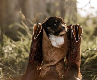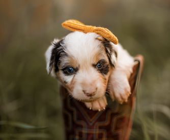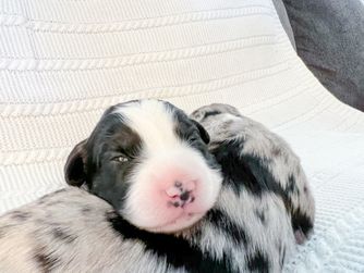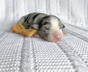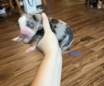 Our puppies include red tri-color, black tri, red merle, and blue merle. Colors will vary depending on the parent dogs.