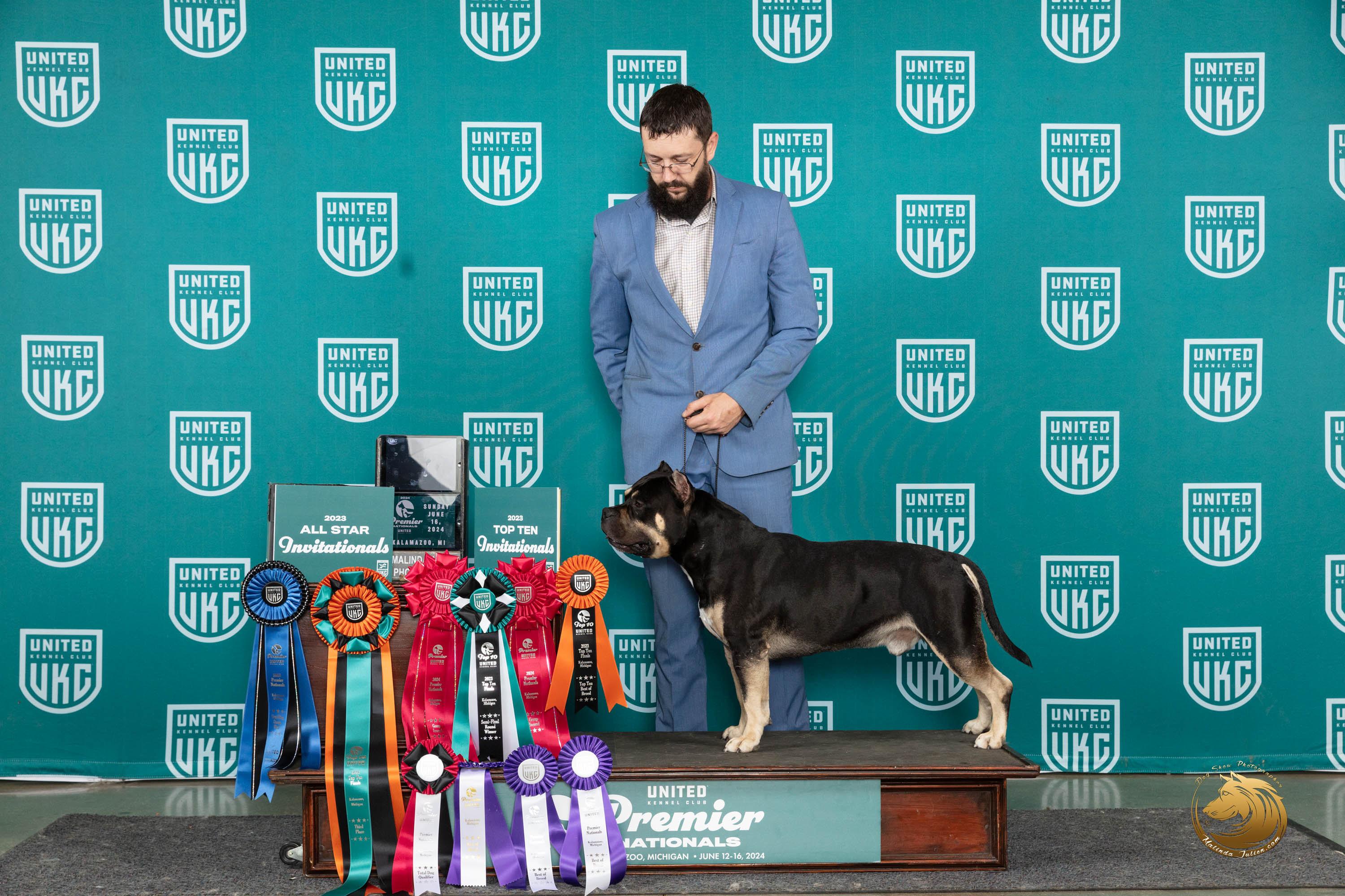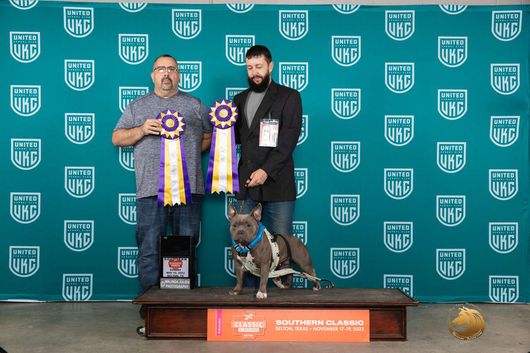 We have the only 3 TIME #1 American Bully, we compete in the ring and out, we health test. We try to show that the bully is the ultimate companion. Our main stud is the reigning #2 Companion Dog, was #1 in 2020 and 21, his sister was #8 in 2020. He is also the #1 overall dog in Ickc (where akc, fci and ukc breeds compete).