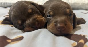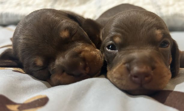 Our Dachshund puppies include red, chocolate, black and tan, and chocolate and tan. Poodle puppies include apricot, black, blue, cream, red, and white. Colors will vary depending on the parent dogs.