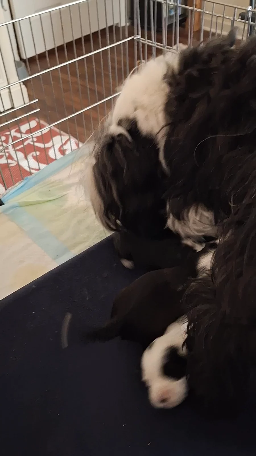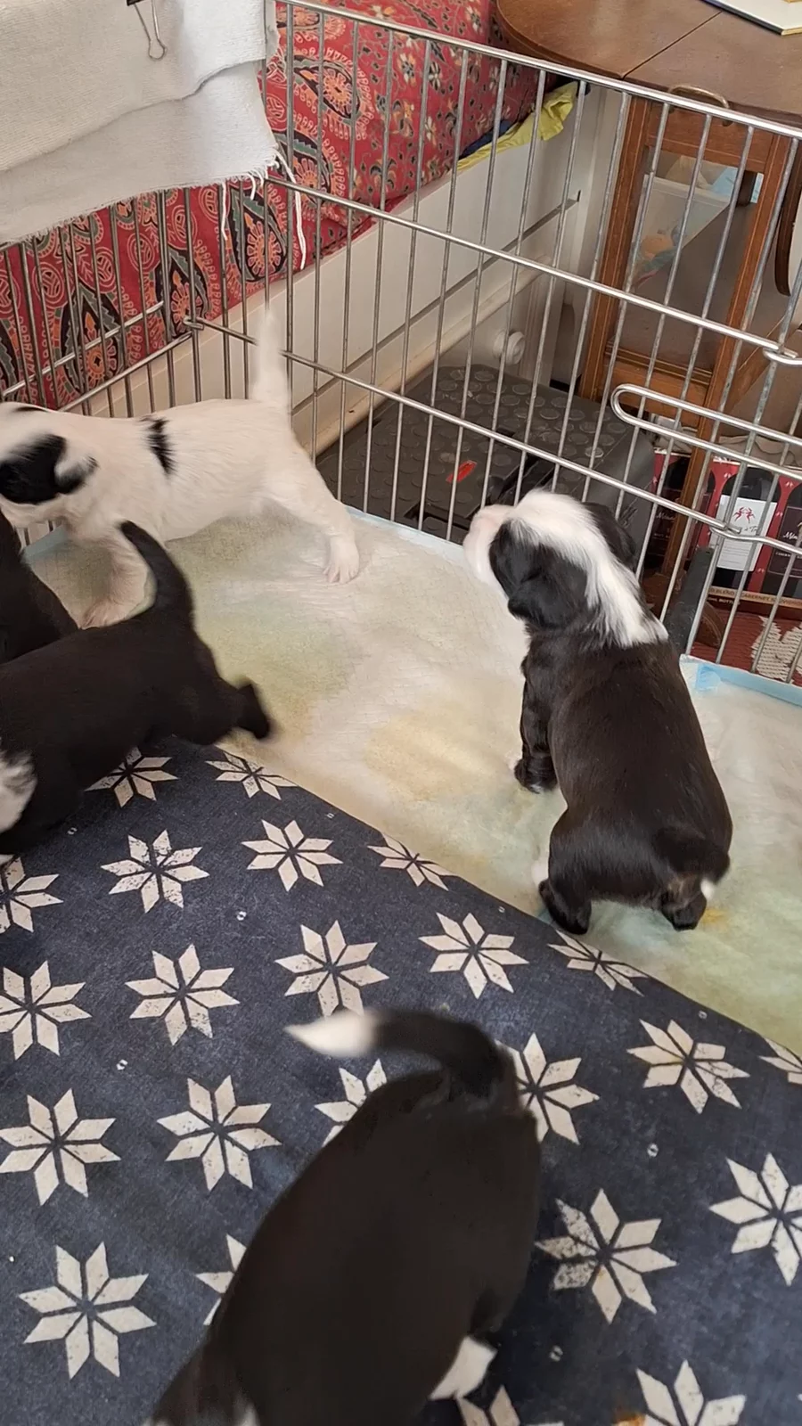 Our puppies are black and white. Colors will vary depending on the parent dogs.